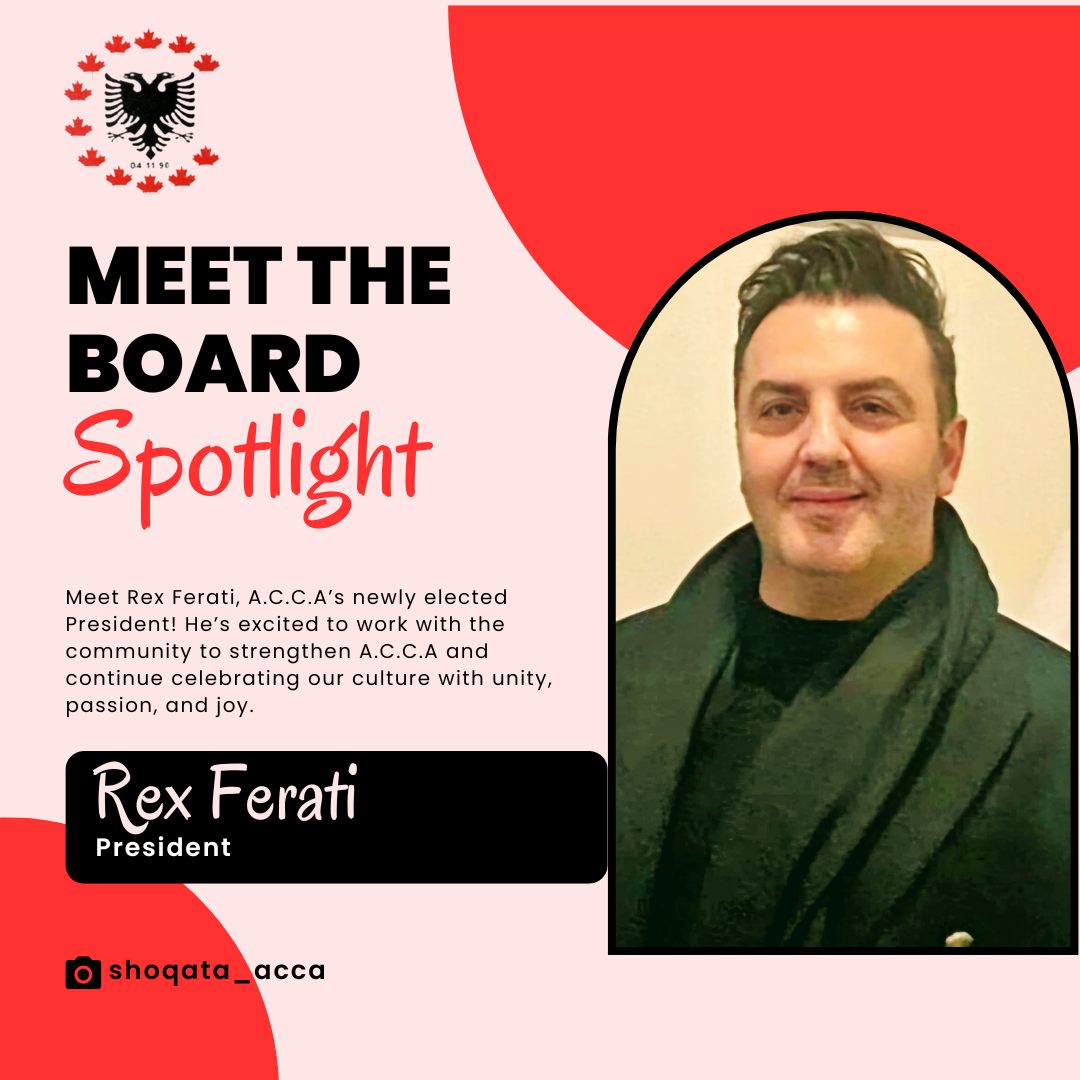 Meet Rex Ferati, A.C.C.A’s newly elected President! He’s excited to work with the community to strengthen A.C.C.A and continue celebrating our culture with unity, passion, and joy.